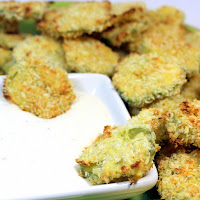 Baked Fried Pickles... Addictive... Very Addictive. It's that time of year again where you can head to any fair and see the stands of fried oddities. One of the originals that has caught on with the trendy Bar and Grill restaurants are Fried Pickles. Well, here's a version, loaded with spices and flavors that will excite any health conscious snacker. BAKED, not fried in oil, these are a treat you can eat at home year round, fast and easy to whip up for any occasion ..they will disappear FAST