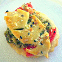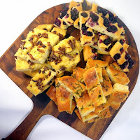 Here's a basic recipe that I turned into three very different tastes... Sea Salt and Herb - Savory caramelized Onion - and the show stopper Sweetened Blueberries. Sets a nice tone for an Antipasto course, portable, easy to eat and gets the party talking!