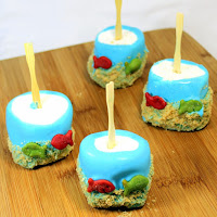 Very easy and tasty treats that will delight. The blue is colored white chocolate , easily decorated to look like a cartoon of an ocean scene. Whimsical, Fun and tasty... A great combo for a group of younguns!