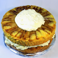I LOVE this cake... The top is apple slices, coated with butter and brown sugar that caramelizes as the soft moist tender sponge cooks. There is a payer of Stiff Whipped Cream (recipe and technique included in post) frosting between. The taste is buttery sweet with hints of caramel apple. A delicious alternative to apple pie that works GREAT for a Fall/Winter Dessert EASY And WONDERFUL!