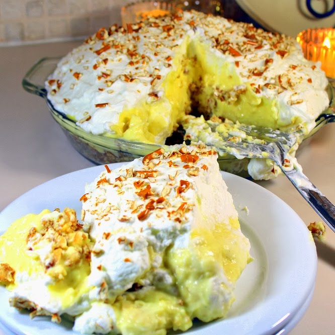 I LOVE Custard pies in general and Banana Cream in specific. This recipe combines everything I especially love... Creamy thick pudding consistency, LOTS of bananas ( this pie holds FIVE), A dramatic look (big DOMED). Add the Pretzel crunchy salty Crust to the sweet Whipped Cream topping and it just may be the BEST PIE EVER!!!