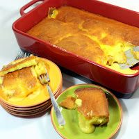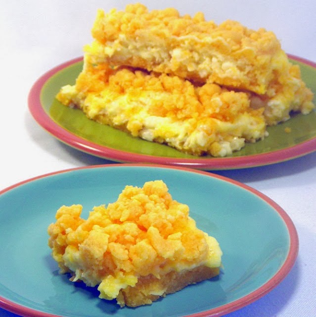 And the result is a creamy sweet custard that has peaches in every bite! Made nice and tall in a Springform pan but could easily be made as bars in a Casserole pan.Makes for a welcome dish at any "Pass a Plate" occasion. A stand out dish to serve.