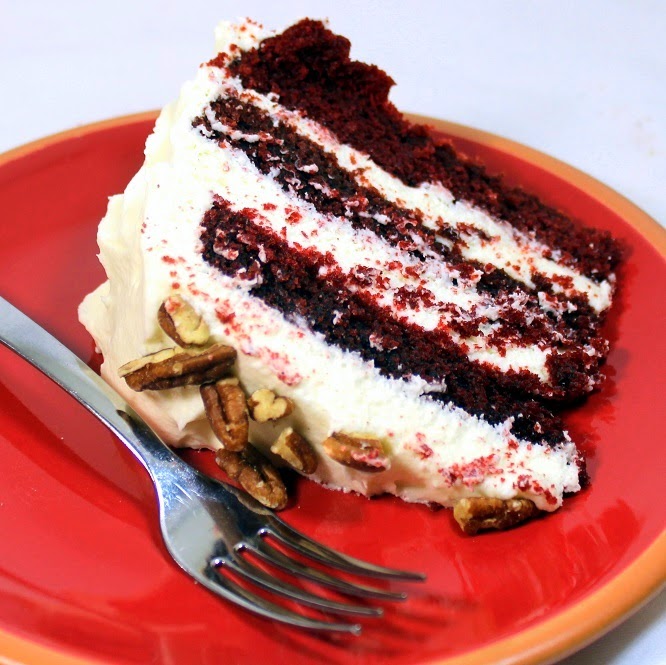 There is a little bit of history to the recipe as many lay claim to being the origin. Truth is (maybe) this Southern style cake has evolved from lowly origins to becoming one of the most famous cakes ever. Buttermilk and vinegar are combined to make a velvety smooth hint of chocolate Devil's Food cake with a stunning beautiful presentation. Famous and Deservedly so.