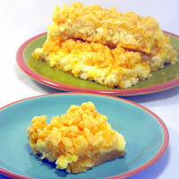EggNog Cheesecake Bars - Church PotLuck Dessert... OH BOY, a new favorite CheeseCake!!! Puffs up beautifully, Creamy Sweet with a smell and lingering taste of Christmas that you can have YEAR ROUND!