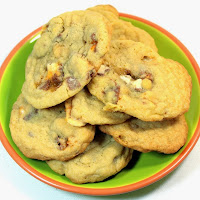 A Standard Chocolate Chip Cookie Recipe with a couple of SECRETS but also instead of Chocolate chips I dices up some Halloween Candy... Snickers Bars have Nugget, Nuts, Caramel and Chocolate... Makes these cookies BETTER than just chips... THE BEST EVER!!!