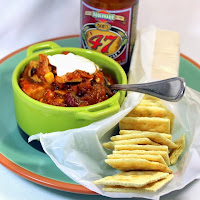 A malty British style PORTER beer adds heft to this tomato based BOLDLY SPICED CHILI... Best I have ever had! Rich thick tomato gravy, loads of meat and beans and that hint of hoppy bold BEER! My favorite!