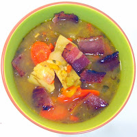 A MOST unexpected soup. DO NOT BE AFRAID OF THE SPELT. It is a grain, looks similar to barley BUT when slow cooked become sweet like a kernel of sweet corn. Combined with a SPICY Pepper Salami Soup, this becomes unexpected and FANTASTIC!!!