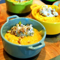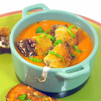 An unusual, creamy sweet yet Earthy savory soup. South African recipe gets a creamy update for a unique combination of flavors that works PERFECT! Used a pesto/mozzarella toasted cheese sandwich as croutons made a delicious inexpensive dinner/lunch and a bit left over to freeze for later!