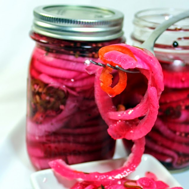 Zesty Pickled Red Onions - Small Batch Canning AND one of those Simple but Next Level Dishes that will make your table sing with color and that delicious unique taste. ABOUT the EASIEST dish to CAN, no boiling or complicated canning process. Plus these are spiced with a little extra ZING! EASY, ZESTY AND ZINGY!