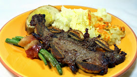 Served 'em up with creamy mashed potatoes, a Sweet Onion Casserole Side Dish, Some Candy Bacon Wrapped Green Bean Bundles and Rosemary Bread drizzled with Olive Oil... a Pretty Good Meal with Delicious Flavors of Summer and a GREAT Contribution to any PotLuck big family and friends dinner.