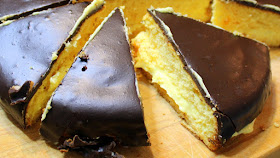 Take a close look at the image to the left.  Use a wire rack and pour the chocolate over a cooled cake.  sure, some will fall through the rack, but it is the easiest way to get that smooth poured on look that this cake traditionally has.